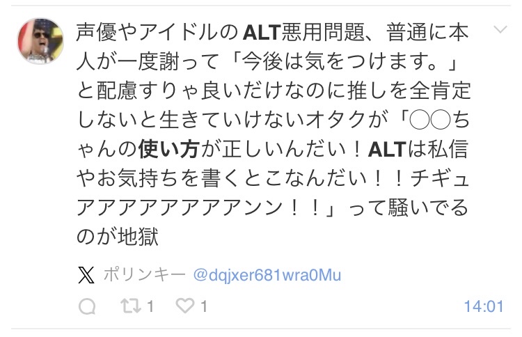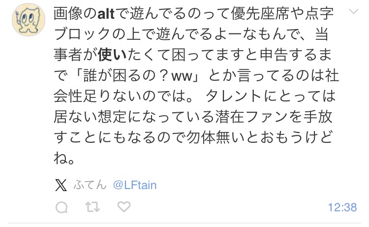 んで画像にALTがあると画像の説明ならともかく関係のない文章であっても入力された最大1000文字読んじゃうから