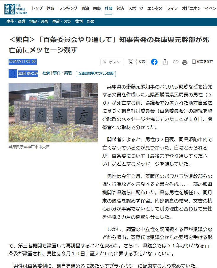 斎藤知事じゃなくて、斎藤知事を追い落とそうとしていた連中の利権絡みで追い込まれて、にっちもさっちも行かなくなったんだろ。