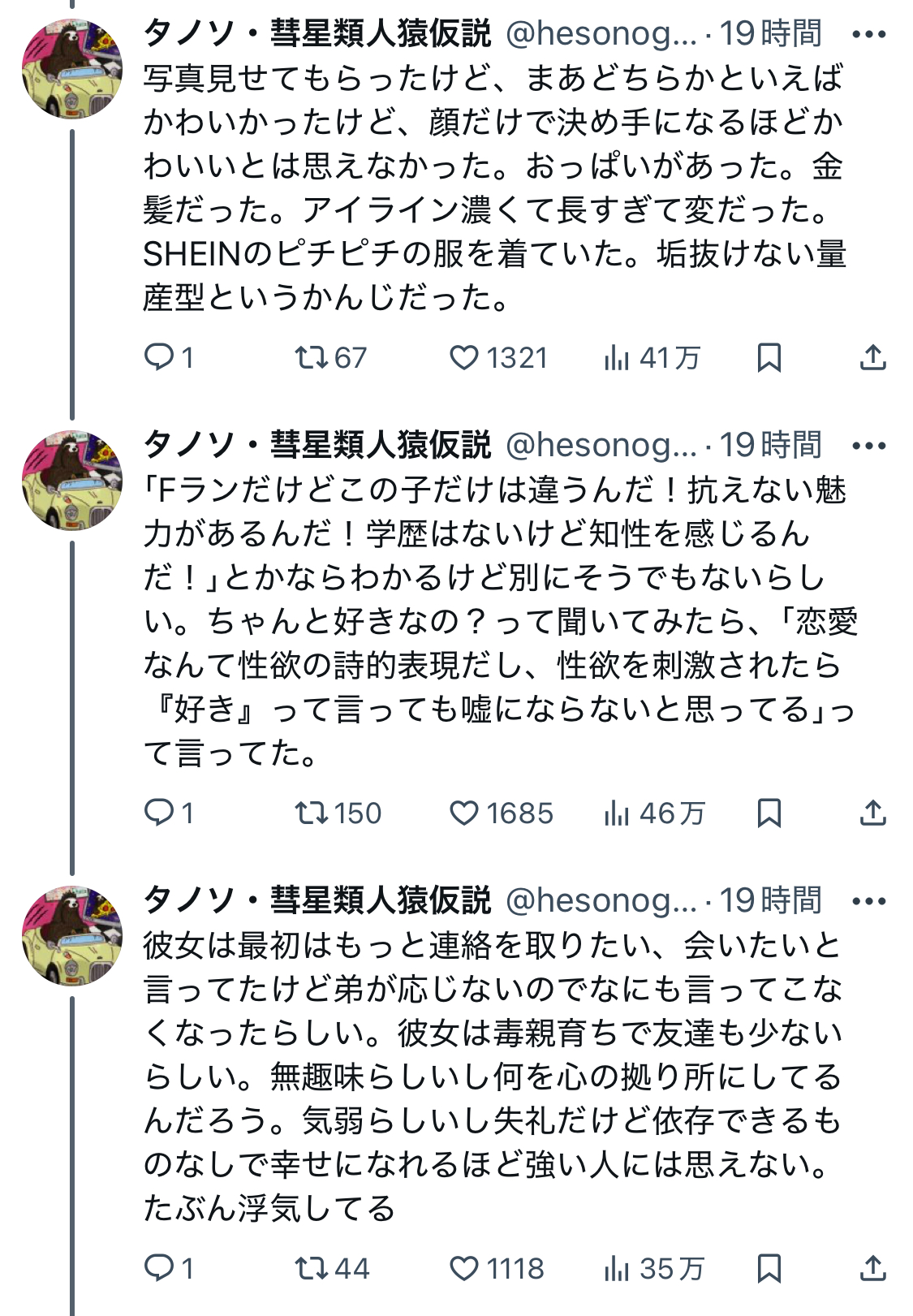 女性に高学歴与えた結果が「早稲田姉」みたいな自己愛モンスターなの残酷やな