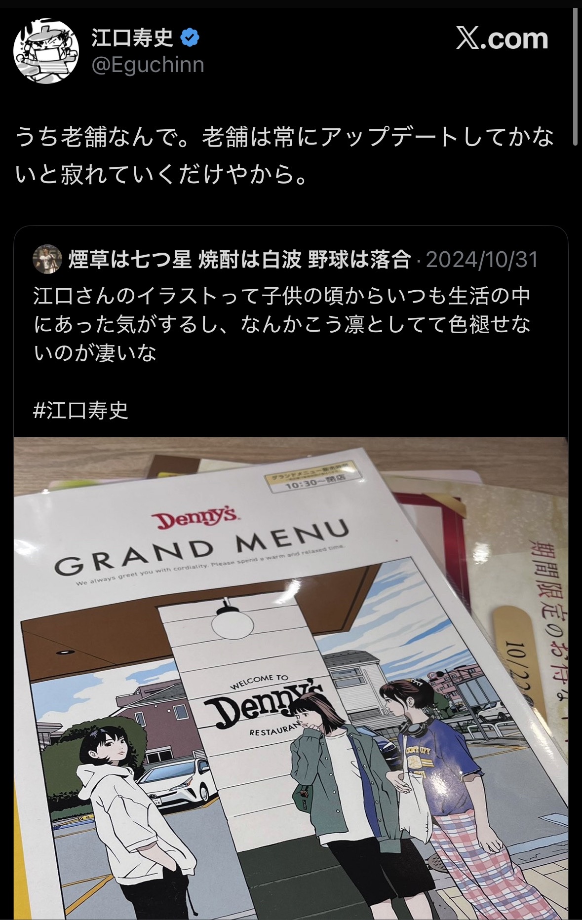 江口寿史氏のイラストの使用に関しまして、一部にご心配やご指摘をいただいております。